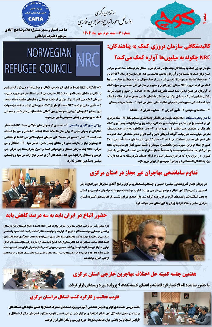 ششمین شماره نشریه کوچ، توسط دفتر امور اتباع و مهاجرین خارجی استان مرکزی منتشر گردید.