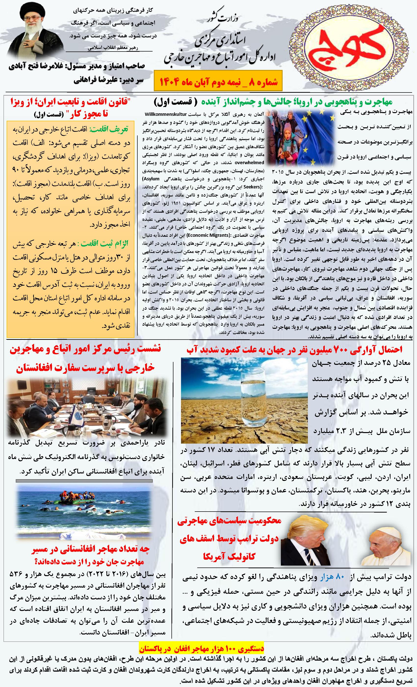 هشتمین شماره نشریه کوچ، توسط دفتر امور اتباع و مهاجرین خارجی استان مرکزی منتشر گردید.