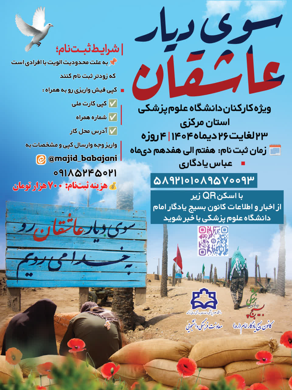 به اطلاع می رساند اردوی راهیان نور، ویژه کارکنان دانشگاه علوم پزشکی برگزار می گردد.