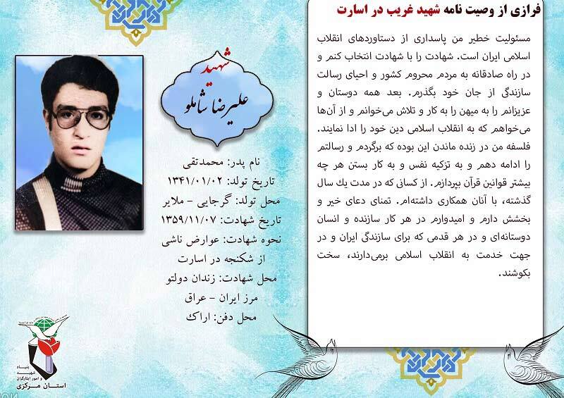 فرازی از وصیت نامه شهدا ۰۵ بهمن ۱۴۰۴ | ۰۹:۴۵ کد : ۵۷۶۸۳ اطلاعیه ارسال به دیگران نام شما ایمیل شما ایمیل دریافتکننده ارسال انصراف تعداد بازدید:۲۳۲ فرازی از وصیت نامه شهدا فرازی از وصیت نامه شهید بزرگوار علیرضا شاملو :