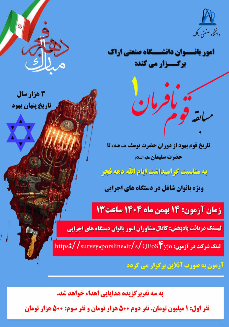 مسابقه قوم نافرمان ۰۸ بهمن ۱۴۰۴ | ۱۰:۳۹ کد : ۵۷۷۴۳ اطلاعیه ارسال به دیگران نام شما ایمیل شما ایمیل دریافتکننده ارسال انصراف تعداد بازدید:۲۳۱ برگزاری مسابقه قوم نافرمان، در ایام الله دهه فجر